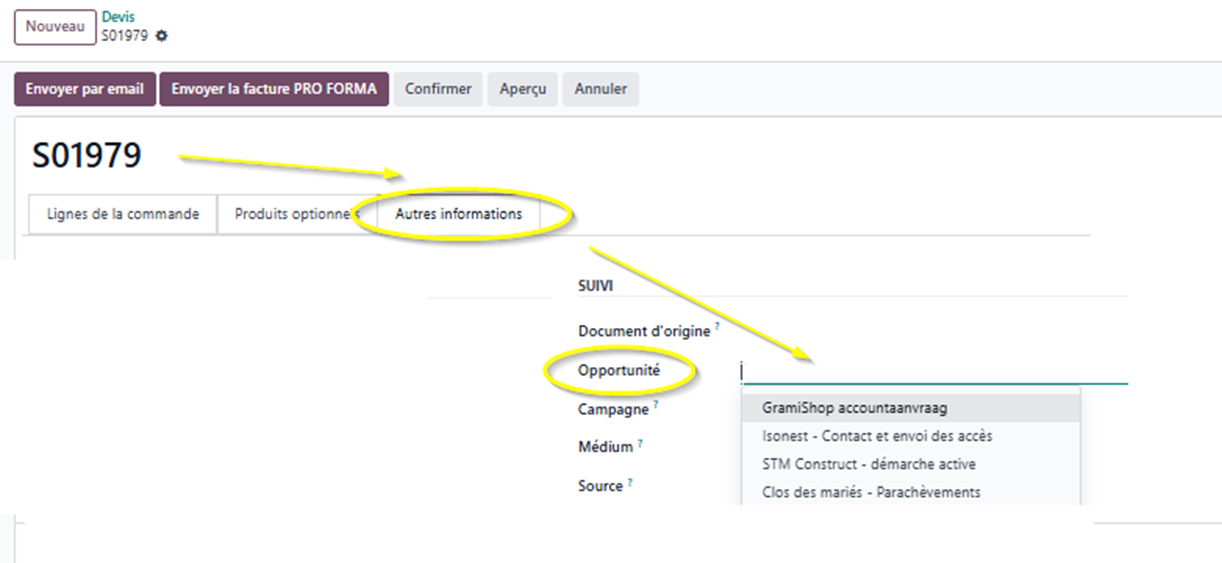 Comment lier une commande à l'opportunité: